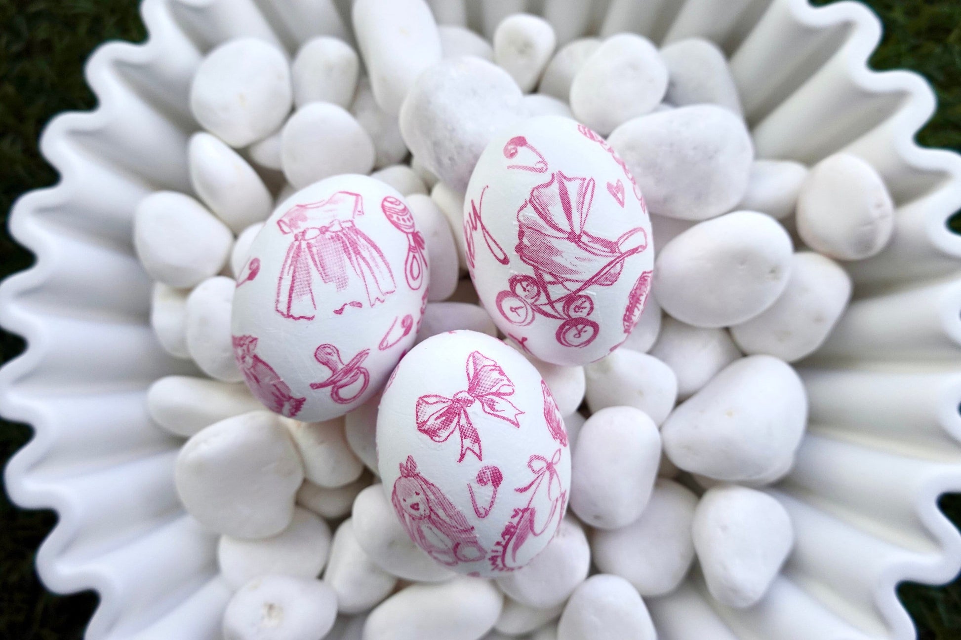 SET OF 3 Wooden Spring Eggs, Pink and White Eggs, Wooden Eggs, Baby Girl Eggs, Easter, Spring Home Decor, Easter Gift, Baby Girl Gift, Basket Filler
